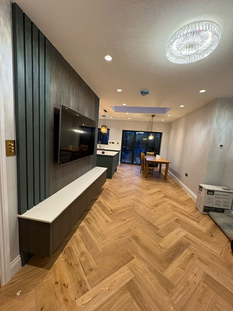 A very traditional type of flooring is Oak herringbone (or parquet) flooring. The term herringbone relates to the pattern of the floor and not finish or colour. This pattern is made up of small blocks of flooring in a herringbone pattern or a range of many other geometric patterns. It can alter any area with its deluxe appeal.Engineered herringbone flooring is very much suitable with underfloor heating. Furthermore, it is marvellous for any room as it can be put through capricious temperature changes and is great for rooms with lots of glazing.