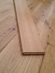 18x125MMx Random Lengths Nature Natural Grade Solid Oak Flooring has a width of 125mm and is 18mm thick. These boards come in random lengths ranging from 300mm to 1200mm. Each board is tongue and grove and has bevelled edges on all four sides. 125mm solid Oak Flooring is finished with 6 coats of UV Lacquer which gives this flooring a smooth and protective coating. The Natural solid oak floors Rustic Grade means this floor will come with Knots and colour variation for a natural looking floor surface. This floor can be installed by secret nailing to an existing wooden subfloor or by sticking down to a concrete subfloor.