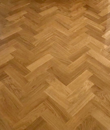 Nature Engineered Oak parquet flooring comesi n a 18mm thickness with a wear layer of 4mm that can be sanded down sererval times if neccessy, The battern size is 90mm wide and 400mm long, this product has a bevel on all 4 sides. Nature herringbone parquet is designed to be glued down to an existing subfloor.The grade is a select which means the flooring this flooring has been carefully selected to obtain an even colour with the occasional pin knot.This engineered parquet comes prefinished with 6 coats of UV lacquer